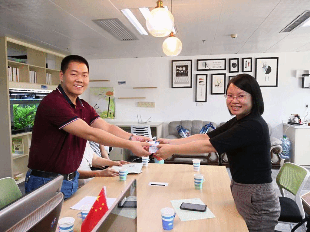 熊拯馆长向刘慧玲秘书长交送借阅卡