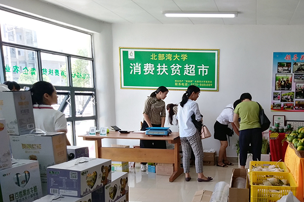 9月28日上午,一辆满载着博白县农副产品的货车顺利到达北部湾大学,校工会在北部湾大学扶贫超市里向全校工会会员发放了国庆节慰问品。