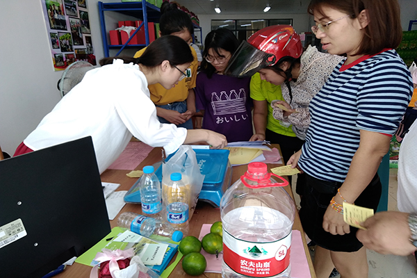 老师们在扶贫超市领取节日慰问品