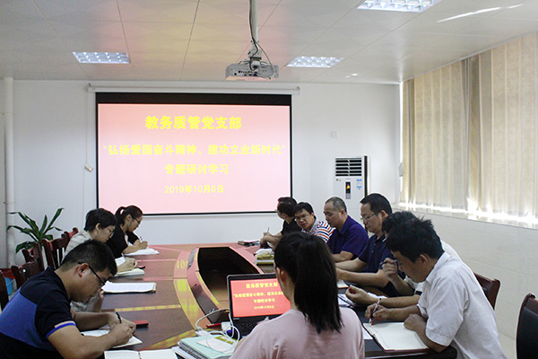10月8日下午,教务质管党支部在行政楼201会议室开展了以“弘扬爱国奋斗、建功立业新时代”为主题的学习研讨会。副校长唐高华参加了研讨会。