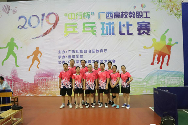 由广西壮族自治区教育厅主办,梧州学院承办,广西学校体育卫生艺术学会协办的2019年“中行杯”广西高校教职工乒乓球比赛于2019年10月10日—12日在梧州学院举行。本次比赛分为教职工组(混合团体赛)和校长组(男子单打、女子单打)两个项目,赛时为期3天。来自自治区教育厅和广西大学等28所高校代表队的267名运动员参加了比赛。
