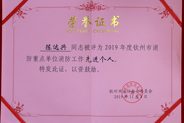 11月8日上午,从2019年钦州市“119”消防宣传月活动启动仪式上获悉,我校保卫干部陈达兴被评为2019年度钦州市消防重点单位消防工作先进个人。