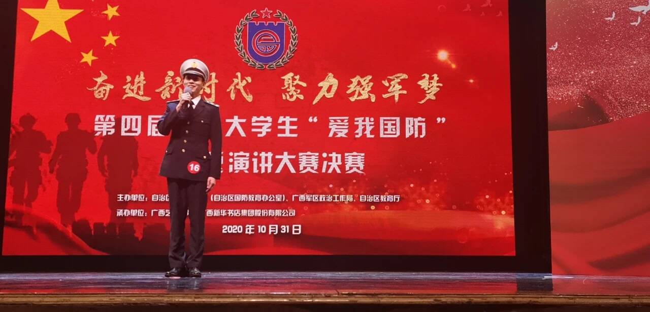 在决赛现场,25名选手进行了精彩的演讲。宋盛遥同学以《逐梦海运,助力海防》为题,通过讲述北部湾大学海运学院师生积极参加海防建设的故事,阐释了没有国就没有家,建设强大国防的时代意义,最终以优异的成绩荣获三等奖。