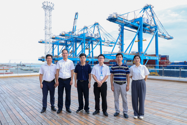 调研团队与北部湾港钦州码头有限公司相关负责人在自动化码头留影