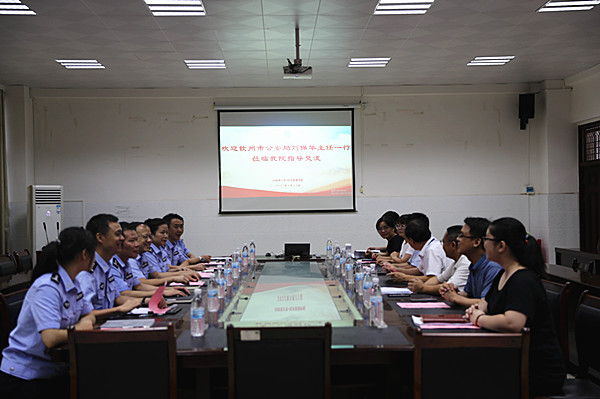 9月23日下午,钦州市公安局政治部主任刘保华、治安支队、刑侦支队、经侦支队、科信科、行装科有关部门负责人等一行到经济管理学院开展“战斗力倍升计划”课题研究座谈。学校人事处处长朱芳阳主持座谈会。