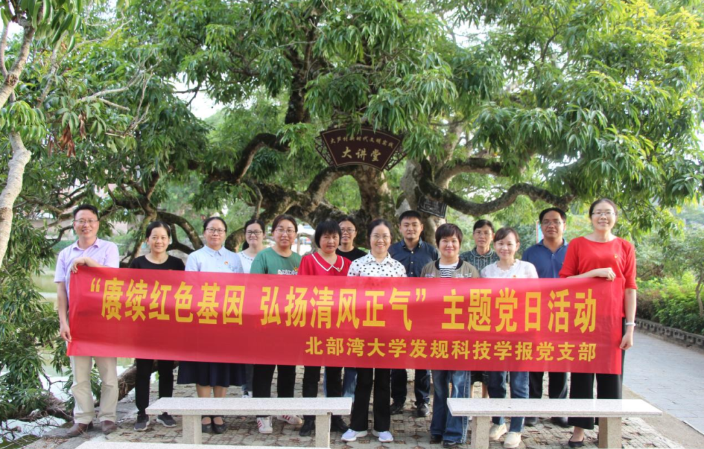 11月10日下午,机关党委发规科技学报党支部赴灵山县新圩镇萍塘古村红色文化基地、佛子镇大芦村廉洁家风家训教育基地开展“赓续红色基因,弘扬清风正气”主题党日活动,共同学习党的二十大精神,深入贯彻落实习近平总书记关于家庭家教家风建设的重要论述,扎实推进“清廉湾大”建设。