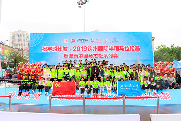 3月24日,2019年钦州国际半程马拉松赛暨健康中国马拉松系列赛在钦州湾广场打响起跑枪,我校400多名青年学生志愿者热情服务本次半程马拉松赛。