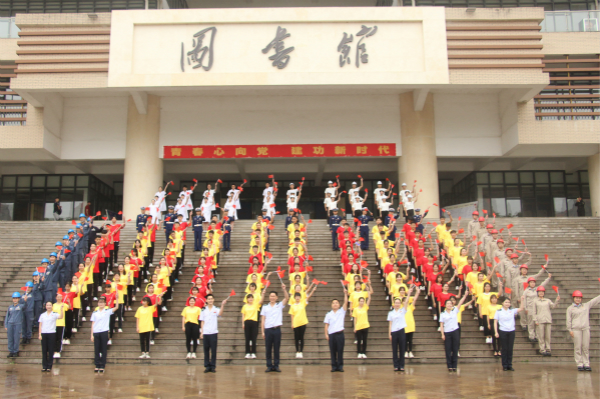活动中,钦州青年们聚集于校图书馆前,身着鲜艳的红黄T桖和工作服,整齐的排列成方块队伍,伴随着激昂的《光荣啊,中国共青团》放声齐唱:“母亲用共产主义为我们命名,我们开创新的世界……”响亮的歌声在校园内回荡,新青年们朝气蓬勃的风采和为时代努力奋斗的决心也随着歌声传响。青年们还在活动过程中摆出“5.4”、“团徽”、“团旗”等队形,并喊出宣誓口号:青春心向党,建功新时代,以此纪念五四运动100周年。