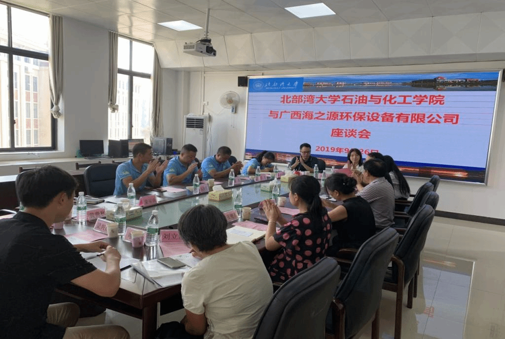 颜朗总经理介绍广西海之源环保设备有限公司与石油化工学院的合作基础和未来拟开展的合作研究领域,希望和石油与化工学院在环保设备设计和环保新材料开发方面加强深层次的项目合作,为北部湾区域的环保事业贡献一份力量。