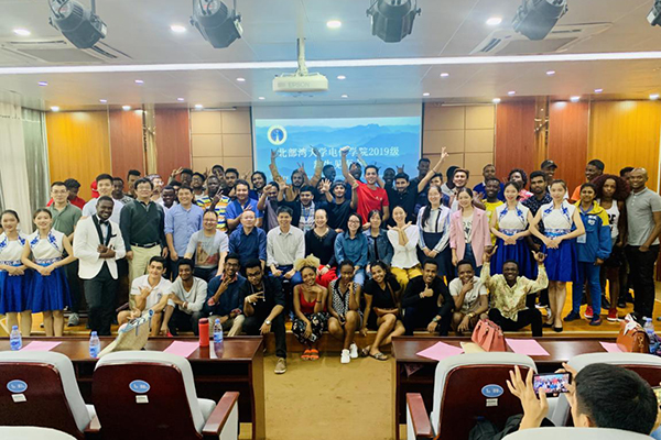 会上,梁家海院长发言致辞,热烈欢迎2019级留学生的到来,祝贺他们成为电信学院大家庭中的一员,同时希望同学们尽快适应校园生活;努力学习,掌握过硬的专业知识;推动中外文化交流,将自己国家的文化介绍给身边的人。接着,留学生学业优秀学生代表Khalid发言,他表示能够到北部湾大学留学是一件很美好的事情,感谢学院里领导和老师的关爱。留学生学生会代表YUNI介绍留学生学生会(CEIE ISU)团队概况,希望2019级留学生积极加入留学生学生会。紧接着进行颁奖仪式,表彰上个学期学业优秀的学生、表现优秀的学生干部。