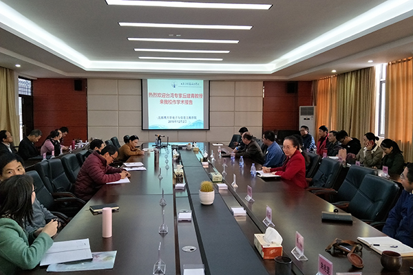 12月2日,台湾淡江大学丘建青教授应电信学院邀请在5-419会议室作“多输入多输出中继器之信道容量优化”的学术报告,会议由电信学院副院长胡俐蕊主持,学院全体教职工参加。