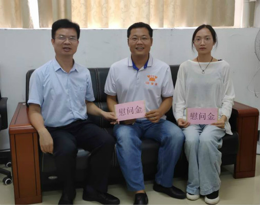 杜树营书记(左)慰问教职工党员李伟峰(中)和学生党员赵鲜花(右)