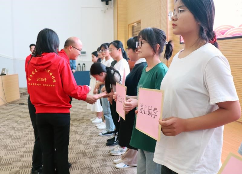 培训班临时党支部副书记梁鹏为我校学子颁发助学金