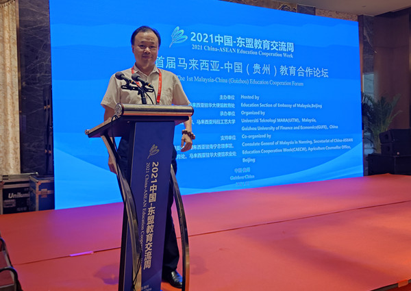 9月23日至25日,中国—东盟教育合作周系列论坛之一——2021年首届马来西亚-中国(贵州)教育合作论坛在贵州贵阳举办。马来西亚驻南宁总领事阿兹利米先生、马来西亚教育部高教总监奥玛教授、贵州省教育厅一级巡视员鞠洪等出席会议并致辞。经济管理学院院长朱芳阳应邀参加大会。